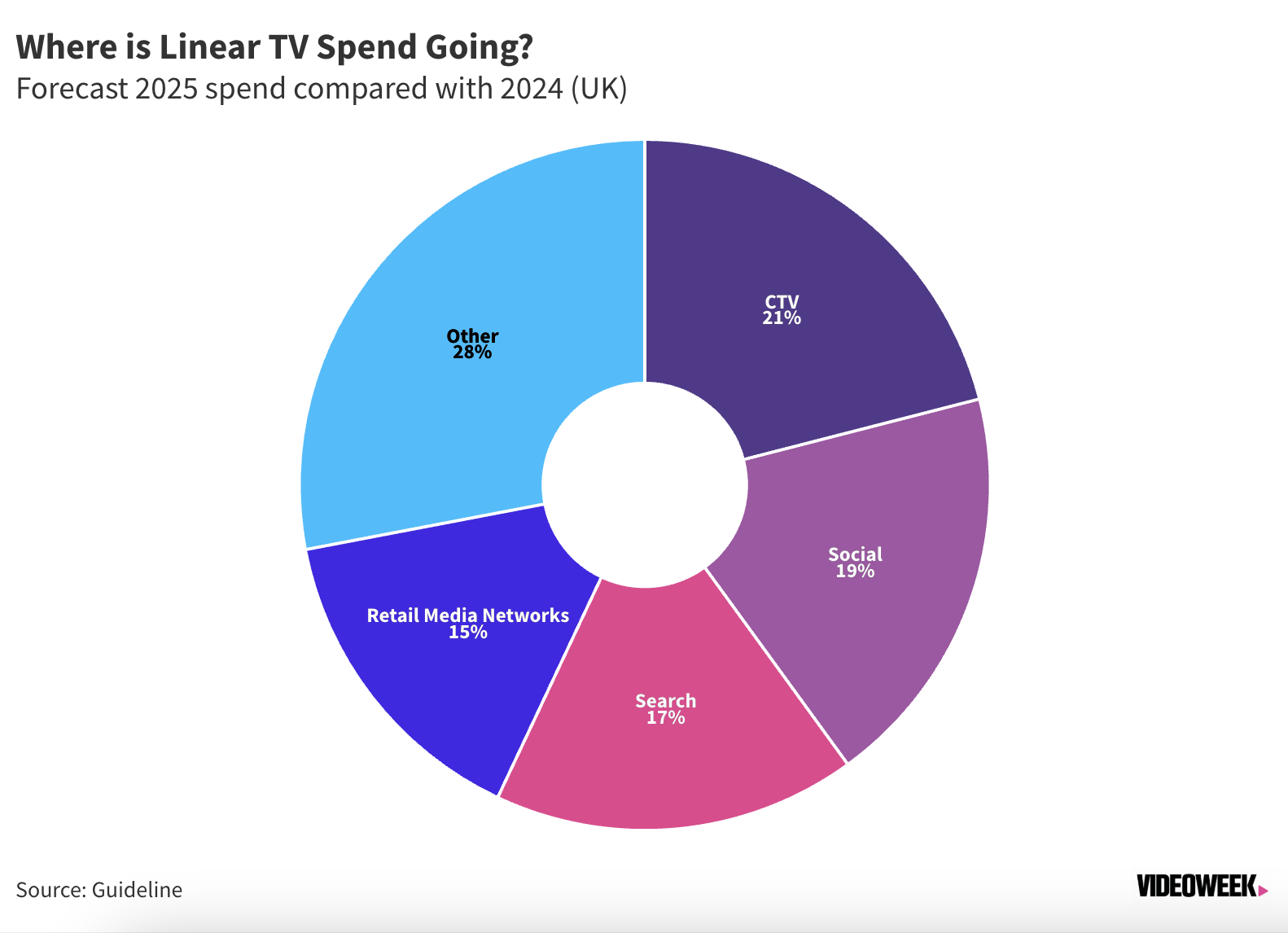 While UK broadcasters have invested considerably this year in strategies to attract more small and medium-sized enterprise (SME) advertisers, Guideline’s figures come from large agency holdcos and major brands, meaning SME spend is not accounted for in the projections. Regardless, CTV spend is forecast to rise 15 percent YoY in 2026, based on billing data Guideline receives directly from large agencies and advertisers.